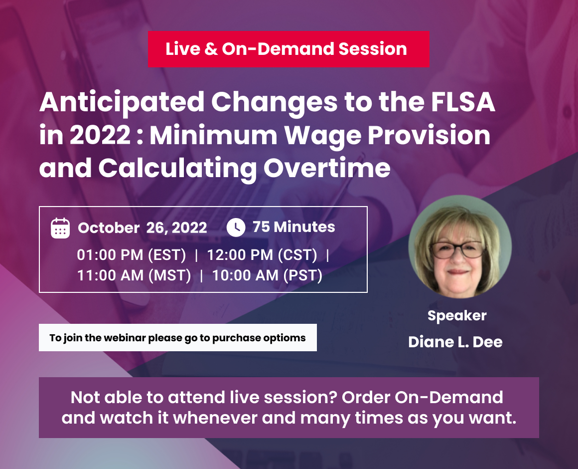 This webinar will lay the groundwork for determining whether your employees are properly classified as Exempt or Non-exempt and ensuring that wage and hour laws are being followed properly. Additionally, this webinar addresses proposed changes to FLSA in Fall of 2022.