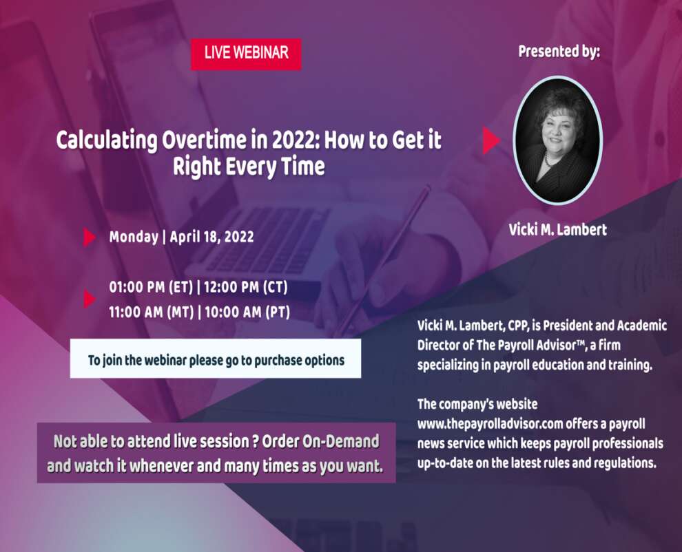 This webinar discusses how to calculate overtime under the FLSA rules for nonexempt employees. Includes definitions of overtime and calculation examples.