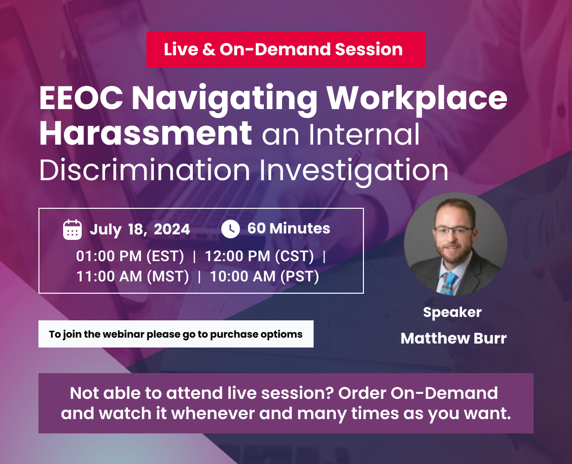 Learn how to conduct thorough fair and impartial investigations into employee complaints and allegations of misconduct when you sign up for How to Conduct Effective Workplace Investigations. This one-hour online training event is packed with crucial information you need to protect your company from legal consequences and reduce business risk going forward.