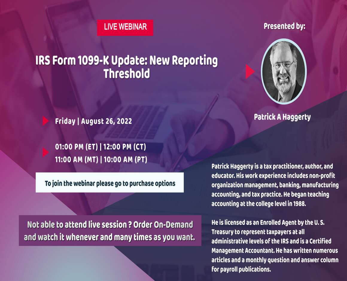 This webinar will cover the latest updates for Form 1099-K including the change in the reporting threshold for 2022 Forms filed in 2023.  It will discuss issuers, recipients, reportable transactions, and provide examples of how amounts should be reconciled and reported on recipient tax returns.