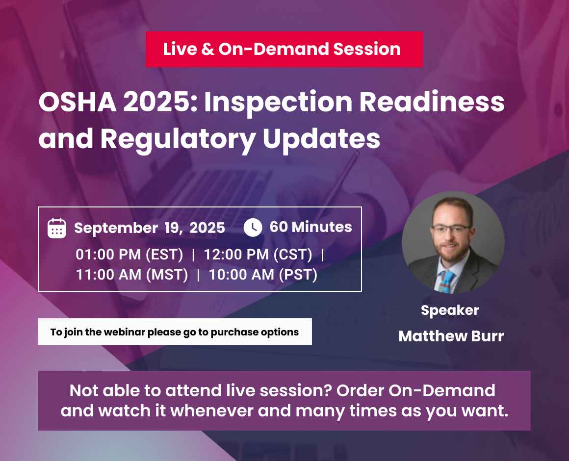 Have you ever wondered what would actually happen during an OSHA inspection? Or perhaps you have an upcoming inspection and aren’t sure how to prepare. Either way…this webinar is for you!